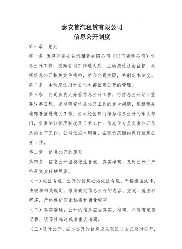 泰安首汽租賃有限公司信息公開制度